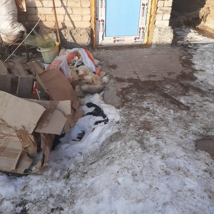Мы с волонтером Дарьей Пересадько заняли крупную сумму и поехали по указанному адресу. Это частный дом в Алматинской области. Зайдя на территорию дома, увидели исхудавшего волка, один скелет остался, так еще и в ужасных условиях. Запах стоял жуткий, волк был весь мокрый, в фекалиях, моче. В пакетах, словно мусор, лежали трупы двух корсаков", - рассказывает Евгения.