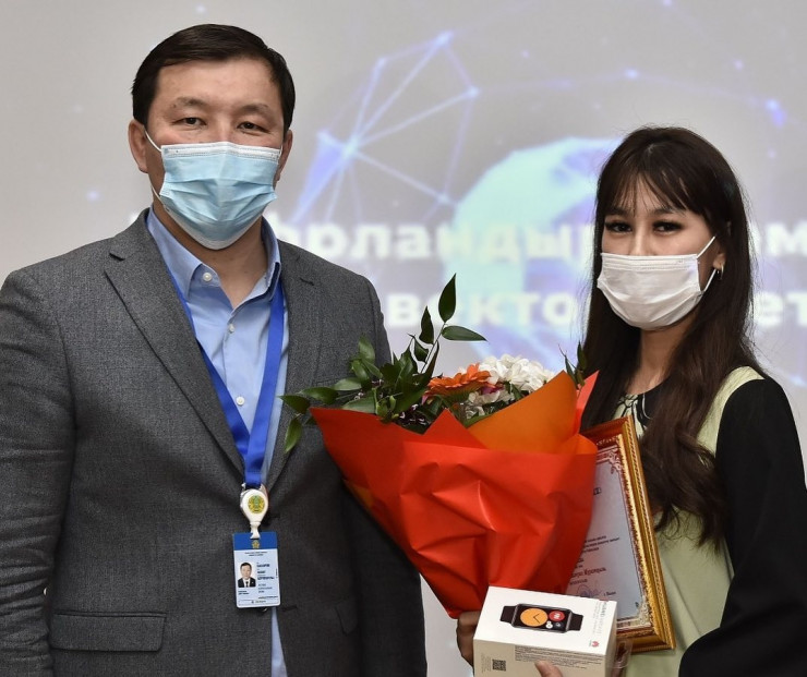 За первое место ему вручили смартфон. Второе место в конкурсе заняла выпускница Национальной академии искусств имени Жургенова Инкар Бекежанова, третье место завоевала преподаватель информатики Назерке Нуралиева.