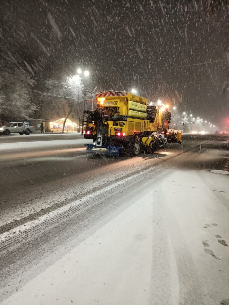 По данным городского акимата, ночью для уборки снега на улицы мегаполиса выехало 535 единиц спецтехники, в том числе 208 пескоразбрасывателей, трудятся 338 дорожных рабочих.