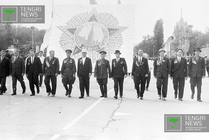 Казахстанцы - Герои Советского Союза в День Победы, Алма-Ата, май 1965 года. Фото: Центральный государственный архив кинофотодокументов и звукозаписей РК.