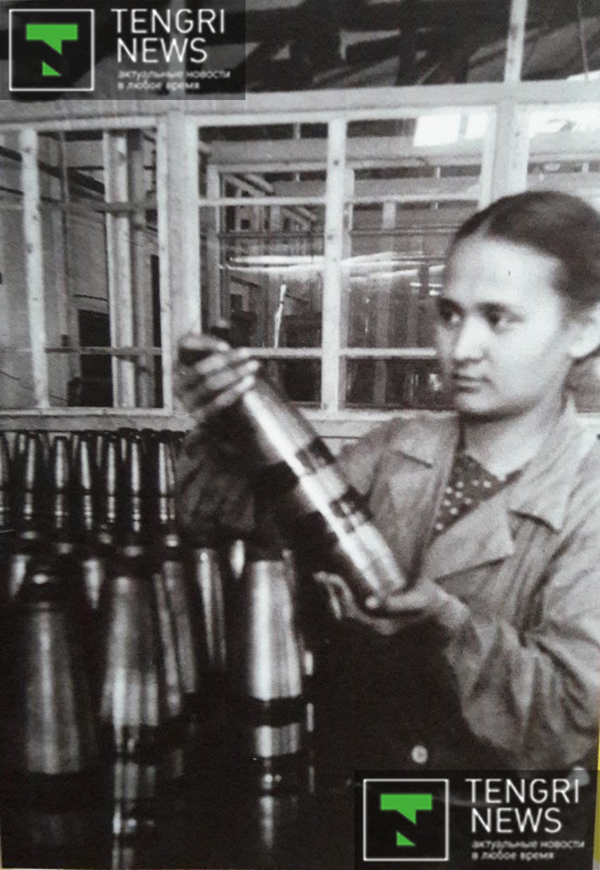 В Казахстане базировались заводы по выпуску боевых снарядов. Контролер С.Азарбаева проверяет готовую продукцию. Фото: Центральный государственный архив кинофотодокументов и звукозаписей РК.