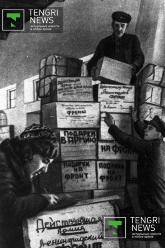 Несмотря на тяготы, казахстанцы посылали для бойцов подарки. Алма-Ата, 1942 год. Фото: Центральный государственный архив кинофотодокументов и звукозаписей РК.