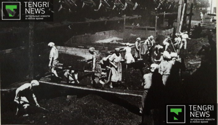Женщины во время погрузки угля в вагоны. Ленгеруголь, Южно-Казахстанская область, 1941 год. Фото: Центральный государственный архив кинофотодокументов и звукозаписей РК.