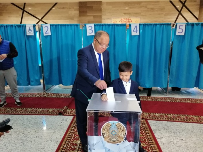 Одним из первых на выборы пришел кандидат от Коммунистической Народной партии Казахстана Жамбыл Ахметбеков. Он проголосовал на 113-м избирательном участке в столичной школе № 66. На выборы он пришел с семьей: мамой, супругой и дочерью.