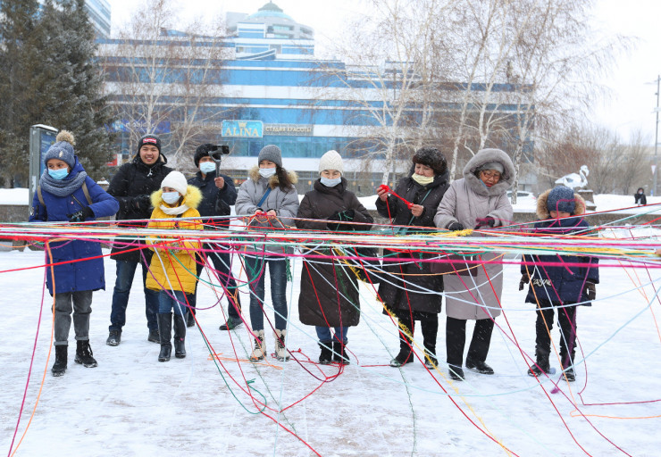 В течение недели в столице проходили бесплатные мастер-классы, на которых обучились вязанию более 200 человек. Основная локация вязальщиц – монумент "Астана Байтерек". Мастерицы и гости города, находясь на вершине монумента, учились вязать и вдохновлялись очаровательным видом предновогодней столицы. Участники флешмоба отмечают, что создание елки объединило семьи общим делом, сблизило жителей Нур-Султана и отвлекло молодежь от социальных сетей.