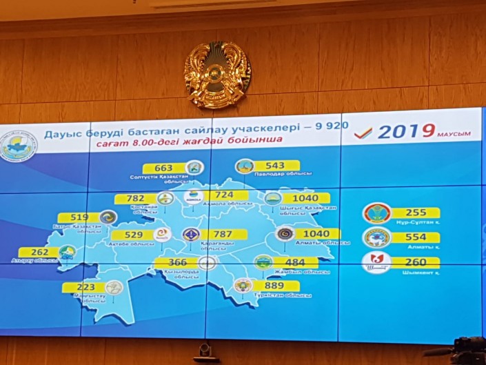 Избирательные участки во всех регионах Казахстана начали свою работу, сообщила секретарь Центризбиркома Сабила Мустафина. Это 9920 участков. Также голосование стартовало в 15 странах: Южная Корея, Япония, Китай, Малайзия, Монголия, Сингапур, Таиланд, Индонезия, Кыргызстан, Россия, Индия, Пакистан, Туркменистан, Узбекистан и Таджикистан.