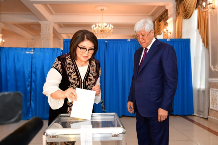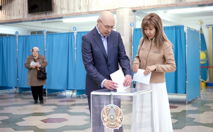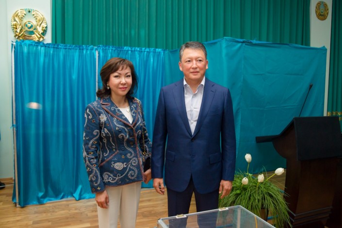 Тимур и Динара Кулибаевы проголосовали на участке № 310 в Алматы.