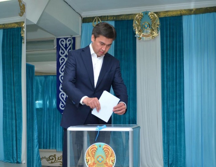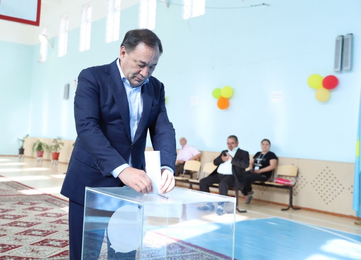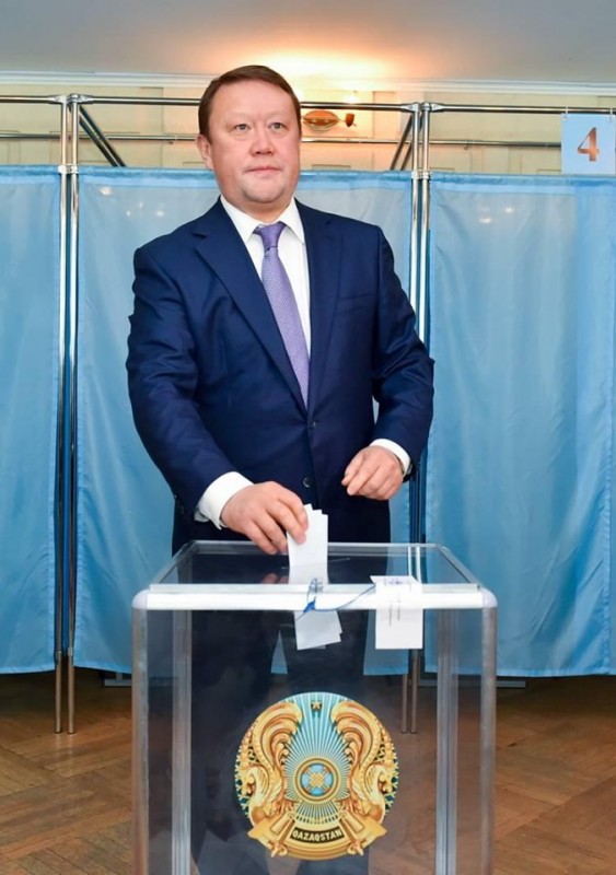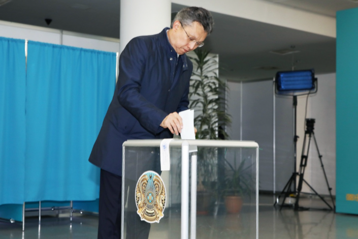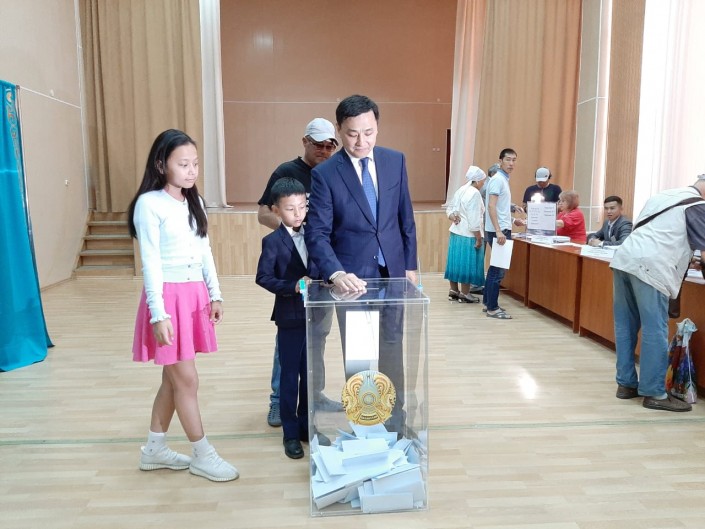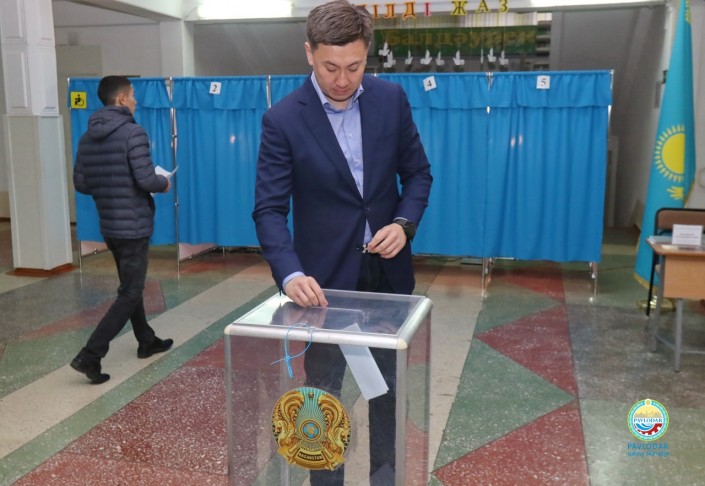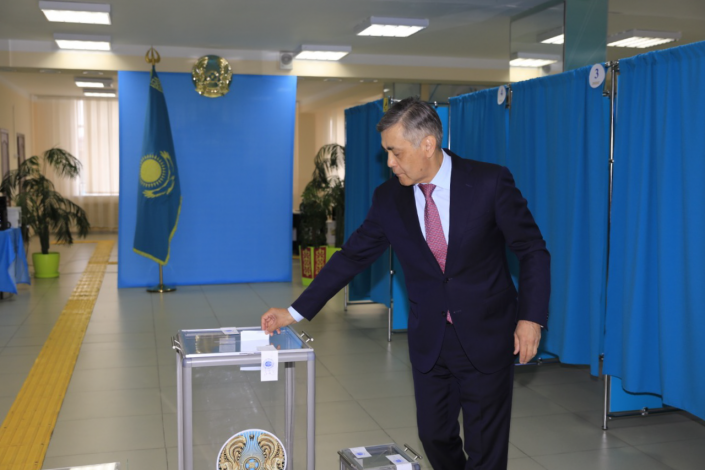 Аким Мангистауской области Ералы Тугжанов проголосовал в 08.30 по времени Актау (09.30 по времени столицы).