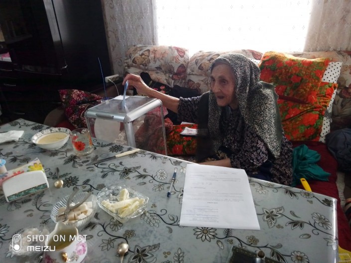 Балаханим Байрамовой из Есика 105 лет. Выборы "пришли" к ней домой.