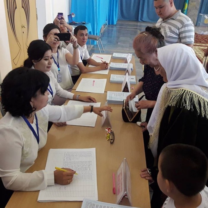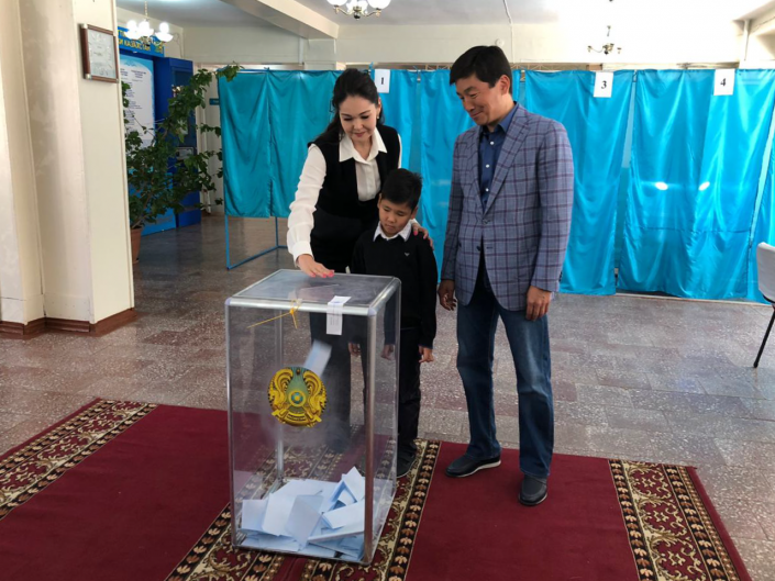 Казахстанцы приходят на выборы семьями и делают селфи.