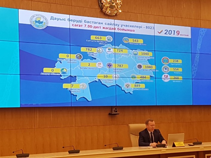 "В день голосования избирательные комиссии за один час до начала голосования приступили к открытию участков. Председатель участковой избирательной комиссии за 30 минут до начала голосования в присутствии членов комиссии проверяет урны, пломбирует их или опечатывает... Также председатель определяет членов, ответственных за выдачу избирательных бюллетеней. По информации поступившей из регионов, по состоянию на 7 утра времени Нур-Султан приступило к голосованию 8 023 участка", - отметил он.