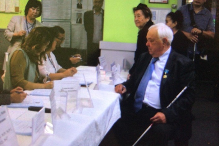 В Усть-Каменогорске на избирательный участок пришел ветеран ВОВ  Павел Ященко. По его словам, он не пропускает ни одни выборы. Павла Александровича сопровождала супруга.