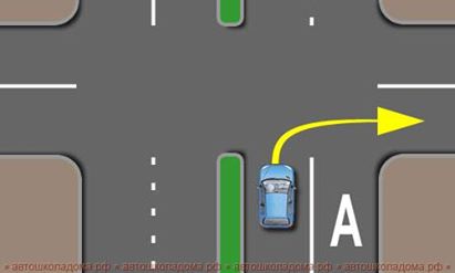 И опять, поворачивая направо, нужно держаться как можно правее. И в данной ситуации "как можно правее" - это будет поворот на вторую полосу".