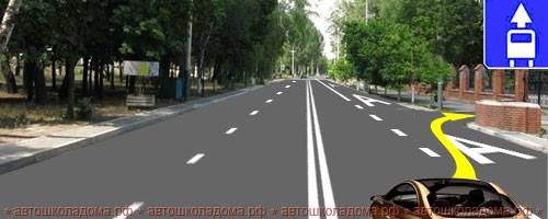 "Точно так же, выезжая на такую дорогу с прилегающей территории, водитель (держась как можно правее) обязан сначала повернуть на полосу для маршрутных ТС. Но затем необходимо незамедлительно ее покинуть (еще до того, как прерывистая разметка перейдет в сплошную)".