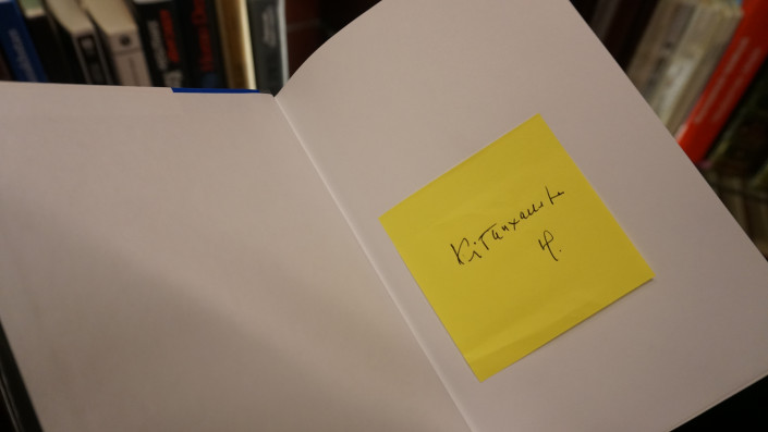 К примеру, в книге "Моя жизнь" Билла Клинтона одна из закладок лежит между 712 - 713 страницами, с пометками о встрече президентов на Совещании по безопасности и сотрудничеству в Европе.
