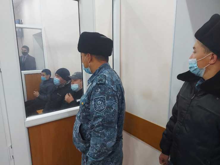 На скамье подсудимых трое человек: это экс-сотрудники частного охранного агентства "Сова" Абзал Адилов, Аян Кафизов и Абутали Коныскали. Им предъявлено обвинение по двум статьям Уголовного кодекса: статье 99, части 2 "Убийство" и статье 252, части 2 "Превышение полномочий служащими частных охранных служб".