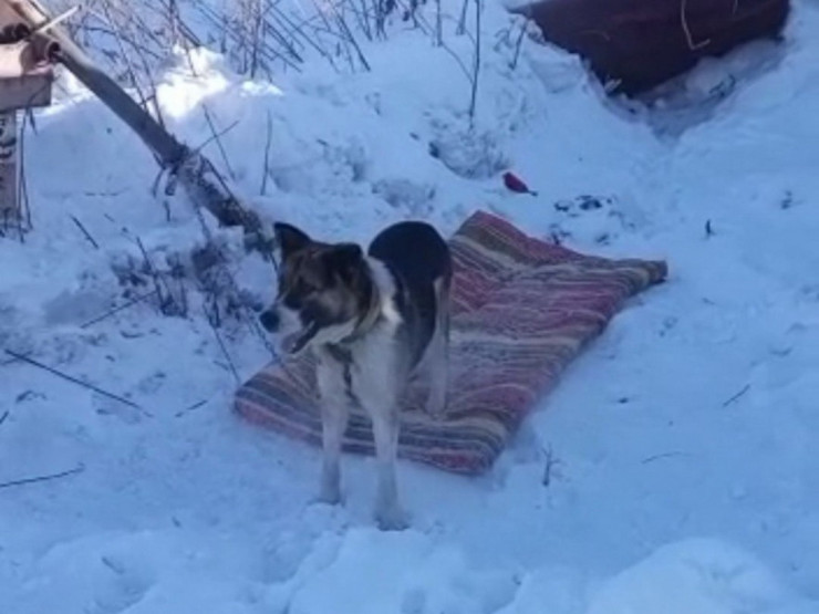 Зоозащитники рассказали, что собака спала прямо на снегу, неустанно охраняя рядом стоявший мешок. Приближаться к нему не давала, при этом явно была напугана.