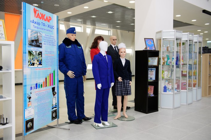 Вниманию участников и гостей мероприятия была представлена выставка продукции отечественных товаропроизводителей, среди которых аккумуляторный завод "Кайнар-АКБ", ТОО "Алматинские краски", ТОО "Хамле Компани ЛТД", ТОО "Метакон", заводы по производству молока и молочной продукции "Аркабай", "JLC cүт", крахмалопаточный завод и другие.