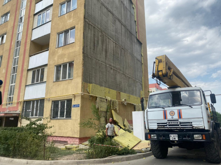 Здесь фасад дома обшивается минватой, далее сеткой и уже потом штукатуркой. Там между стеной и облицовкой могла попасть вода через парапет в верхней части. Сейчас нужно выяснить, кто виноват: застройщик "Астана Курылыс" или КСК. Последствия будет устранять один из них", - пояснил руководитель отдела жилищной политики Управления городской комфортной среды Алматы Олжас Таджибаев.