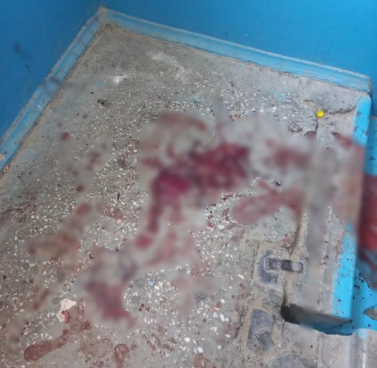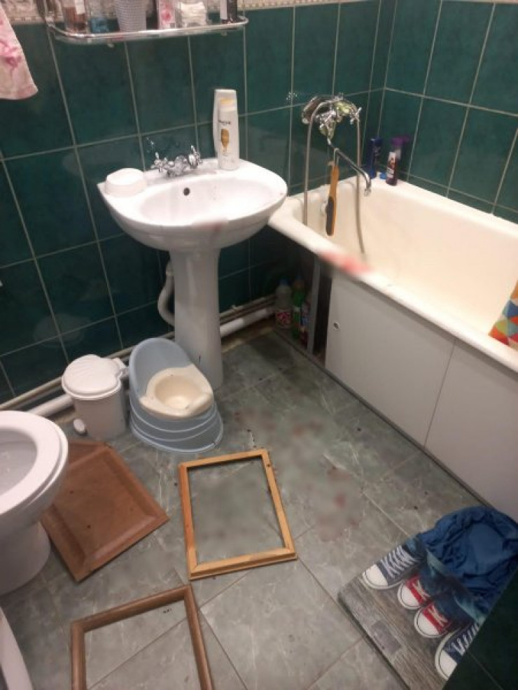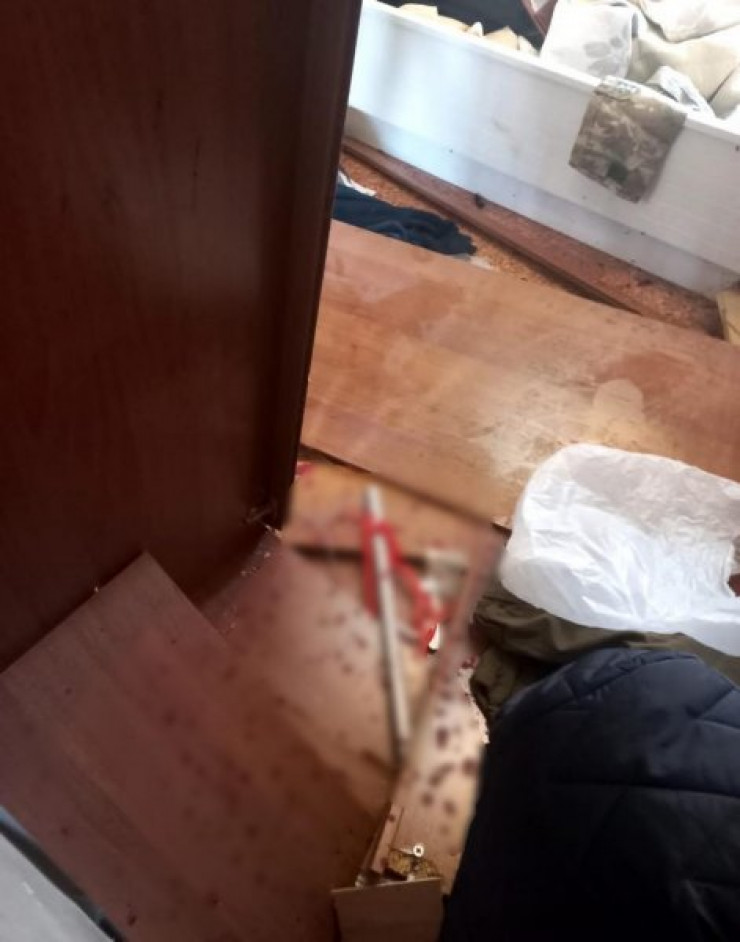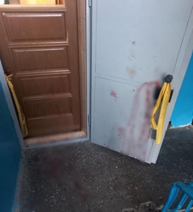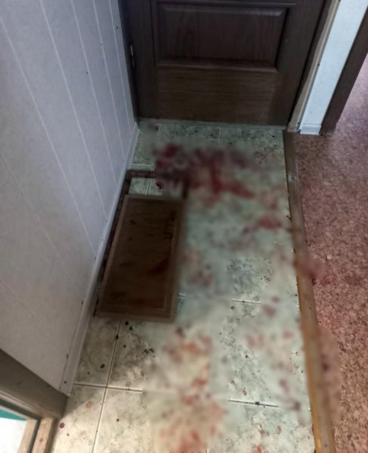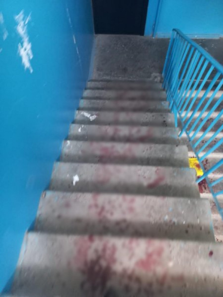 Кадры с места события в редакцию издания прислали очевидцы. На месте происшествия в квартире и в подъезде, как видно на снимках, все залито кровью.
