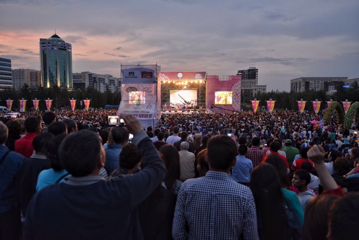 Выступление артистов стало подарком для казахстанцев в честь Дня Астаны. Столица празднует в этом году 18-летие. Каждый год в этот день сюда съезжаются тысячи людей, чтобы погрузиться в праздничную атмосферу.