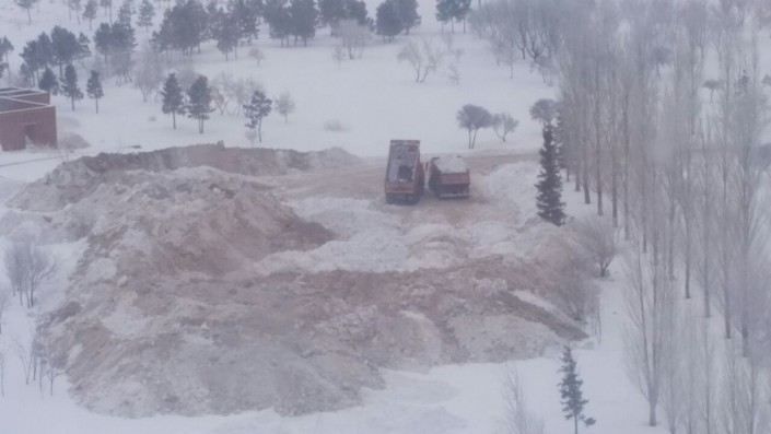 Читатель портала прислал в редакцию фотографии, на которых видно, как техника выгружает снег на территории парка в Астане.