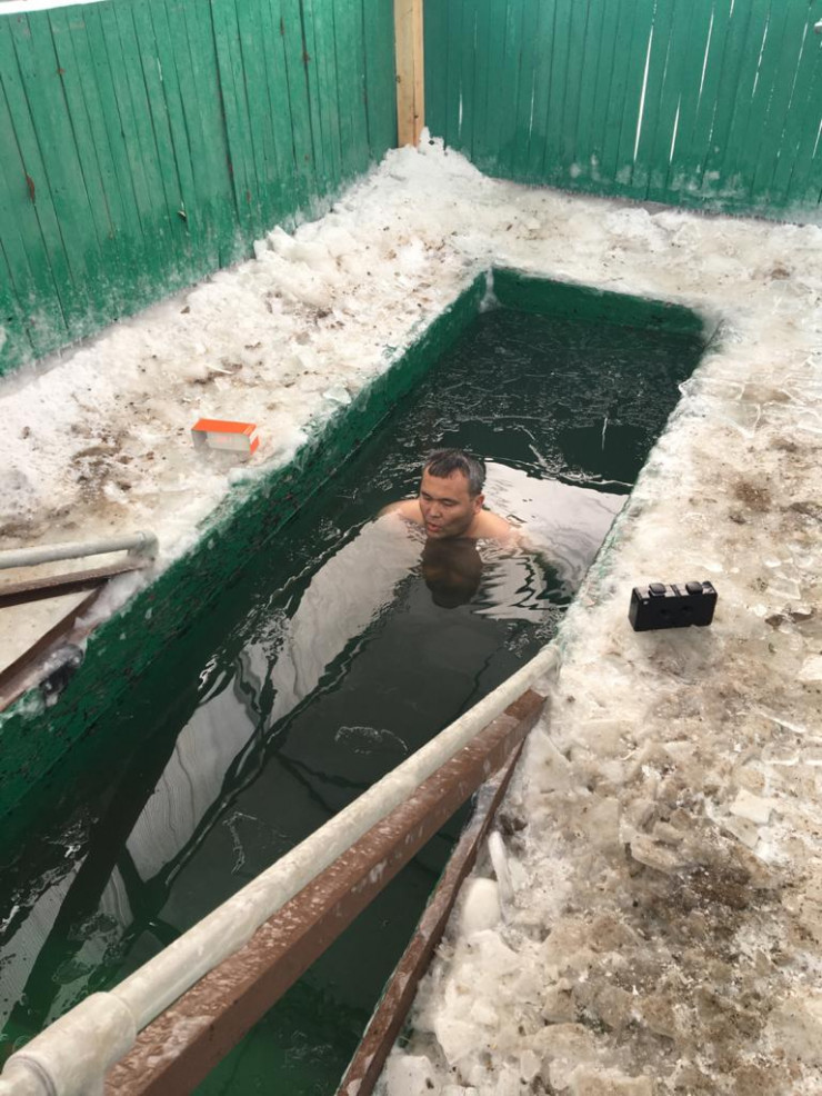 "Тогда состояние здоровья было хуже, видимо, я был не на пике формы и иммунитет был слабее, поэтому далось тяжелее. В этом году единственное, через два или три часа после проруби начались признаки насморка, но я выпил имбирный чай. На ужин в суп добавил смесь перцев. И сразу пришел в норму. В этой проруби я купался впервые, точно не знаю, какое там покрытие на дне. Говорили, что дерево, но, кажется, либо покраска, либо еще что-то. Потому как большой палец ноги и часть стопы замерзла, поэтому после 45 минут я решил выйти, не рисковать. Когда я проверил состояние пальца, оказалось, что сильного обморожения не было. Вначале палец плохо сгибался, но потом все пришло в норму", - поделился мужчина.