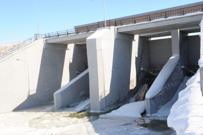 Вместе с тем специалисты тщательно отслеживают уровень контррегулятора. Для предотвращения его наполнения подо льдом реки Есиль пропускаются потоки воды, равные четырем кубометрам в секунду.