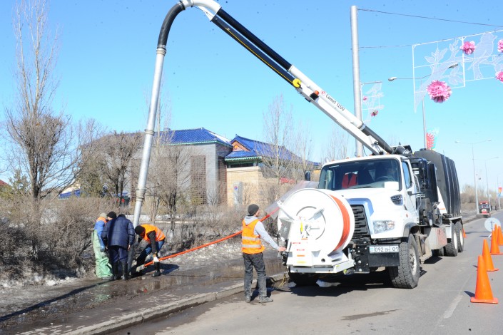 Сообщается, что лотковые и очистные сооружения города полностью готовы к пропуску воды. В целях очистки систем ливневой канализации в столице приобретены две новые специально оборудованные машины "Кэмел", которые очищают свыше 350 километров подземных ливневок. Стоимость машин составила 306 миллионов тенге, деньги выделены из городского бюджета. Устройство одновременно всасывает ил, обеспечивает канало-промывочную работу и полностью промывает ливневую канализацию.