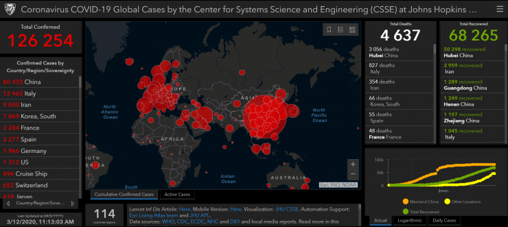 Вчера, 11 марта, Всемирная организация здравоохранения (ВОЗ) объявила новый коронавирус пандемией. Заболеванием охвачено больше 126 тысяч человек в 114 странах. Число погибших превысило 4,6 тысячи человек. В то же время полностью излечились от болезни более 68 тысяч пациентов.