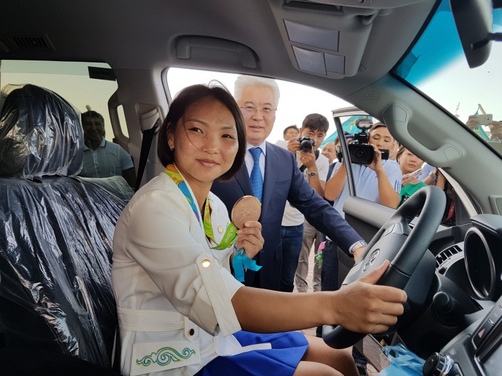 Жазире Жаппаркул и Галбадрах Отгонцэцэг подарили по внедорожнику, сообщает Tengrinews.kz.