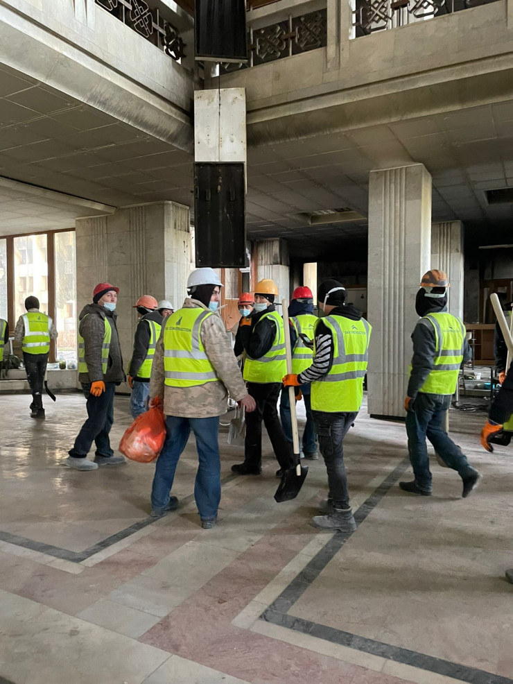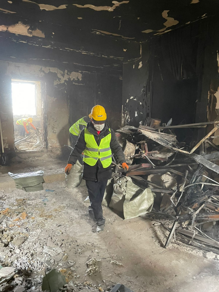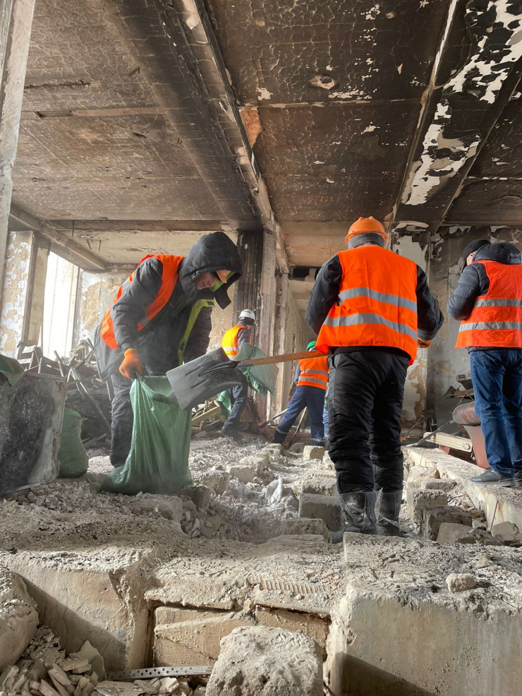 В Алматы начата работа по расчистке здания городского акимата после пожара, передает корреспондент Tengrinews.kz.