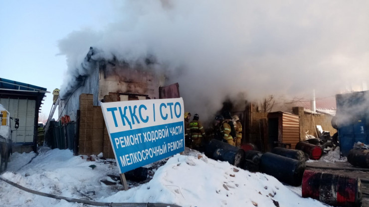 Одноэтажное здание станции технического обслуживания горит в Астане, передает корреспондент Tengrinews.kz.