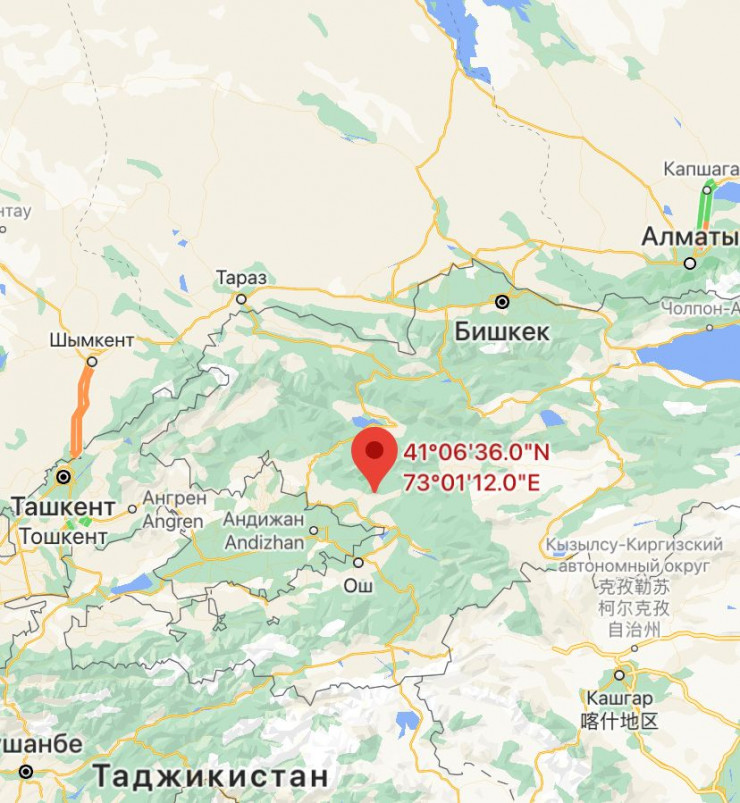 Энергетический класс землетрясения - 11.9. Магнитуда MPV 5.2. Координаты эпицентра: 41.11 градусов с. ш. 73.02 градусов в. д. Глубина - 5 километров.