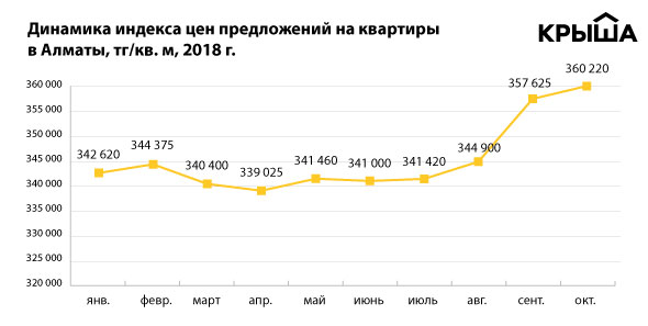 В Казахстане средние цены на жилье в октябре выросли, передает Tengrinews.kz со ссылкой на аналитиков сайта Krisha.kz.