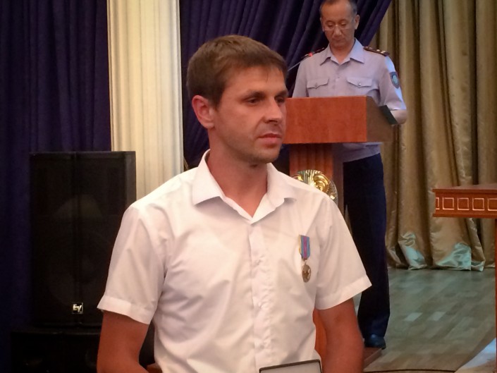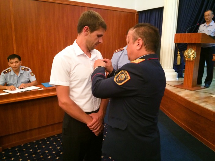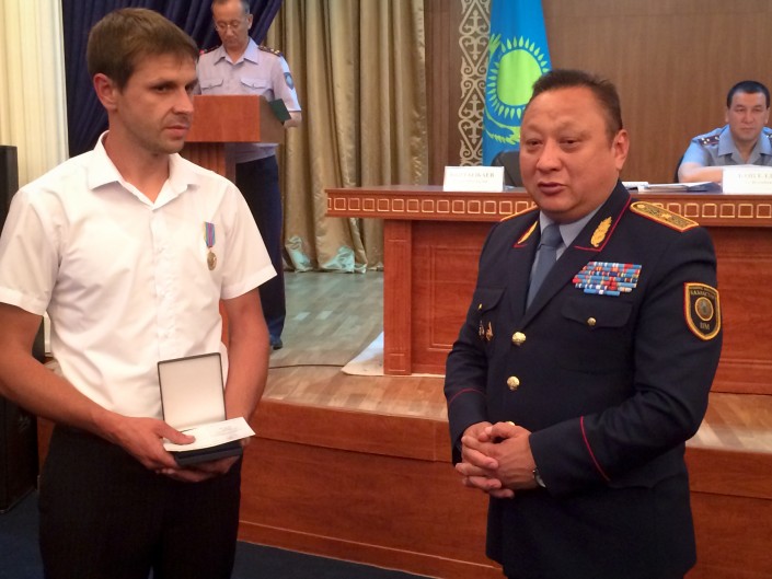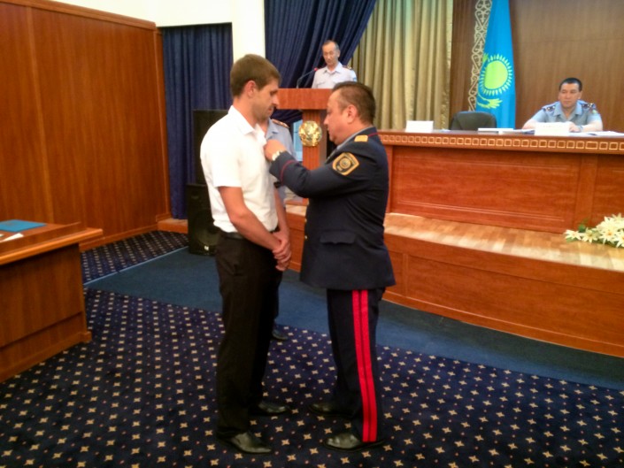 За оказанное содействие полиции приказом Министра внутренних дел Республики Казахстан Андрей Андреевич Маркин сегодня, в присутствии личного состава ДВД области, был награжден медалью.