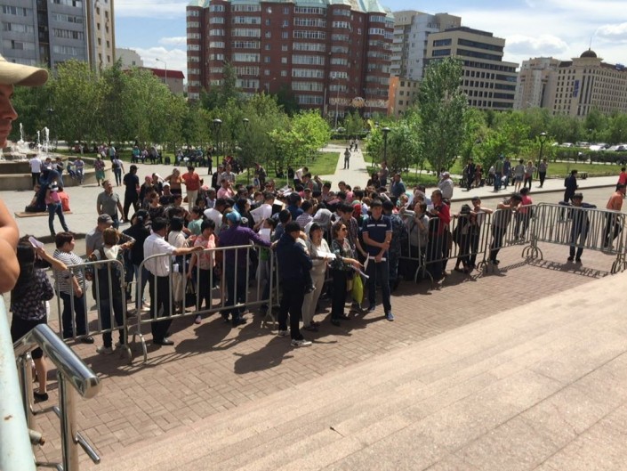 Из-за большого количества желающих подать заявление возле акимата выставили ограждение.