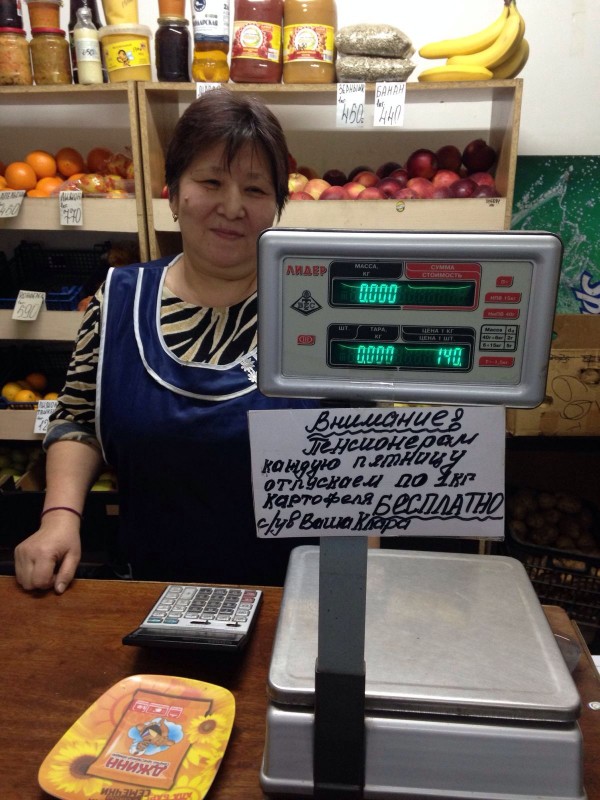 Как говорят покупатели, она и раньше удивляла непривычными маркетинговыми ходами - то яблоко бесплатно в пакет кинет "на пробу", то отговорит от покупки, предлагая что-то вкуснее и дешевле. Желая помочь нуждающимся людям, продавец и в этот раз отличилась оригинальностью. Получить бесплатно килограмм картофеля в отделе Куралай может любой пенсионер.
