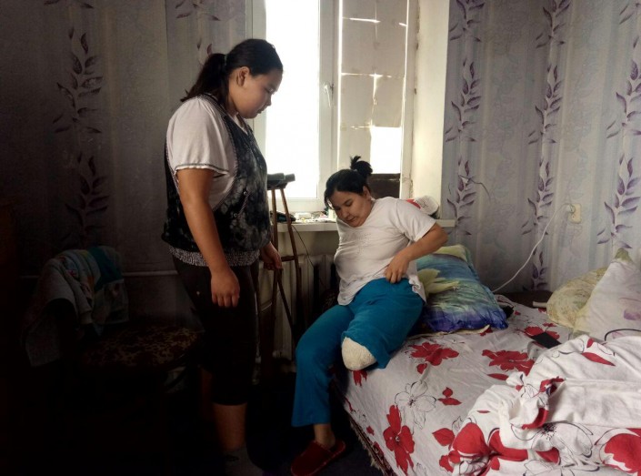 Корреспондента Tengrinews.kz Жанна встречает в постели: ампутацию она перенесла буквально десять дней назад. Нога, которой уже нет, до сих пор болит. Врачи говорят, что фантомные боли могут преследовать пациента долгие месяцы, а то и годы. По ночам Жанна просыпается по несколько раз, аппетита совсем нет. Хорошо, что рядом есть 14-летняя дочь Разия, которая заставляет маму кушать. Девочка тоже инвалид: у нее болят почки и мочевой пузырь, есть проблемы со спиной и гормонами.
