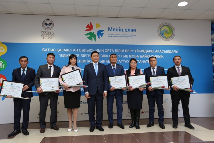 Отметим, что в рамках программы "Менің елім" был проведен конкурс "Биіктерге бірге" среди образовательных школ региона. По итогам отбора были выбраны  школы-победители. Из рук акима области Алтая Кульгинова они приняли сертификаты на получение нового спортивного инвентаря.