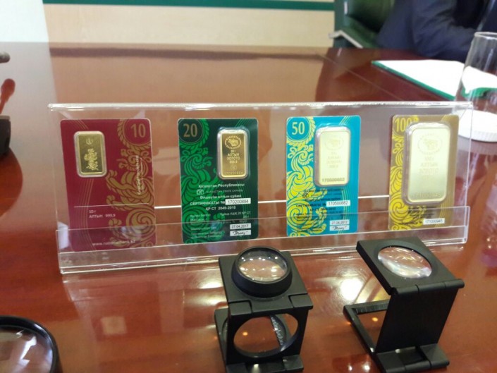 По его данным, первыми участниками являются АО "Народный банк Казахстана" и АО "Евразийский банк". Золото можно купить в Астане, Алматы, Усть-Каменогорске и Атырау. В перспективе география реализации золотых слитков будет расширена, как и количество банков-участников. Золотые слитки будут выпускаться в специальной вакуумной упаковке.