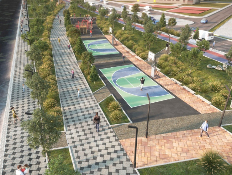 Здесь также появятся теннисные столы, теневые навесы, скамейки-качели, зона для барбекю.