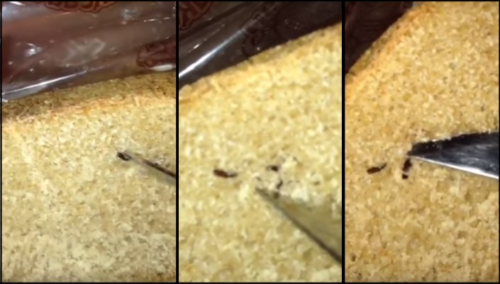 Жуков обнаружили в хлебе жительницы Алматы Кадры из видеоролика YouTube