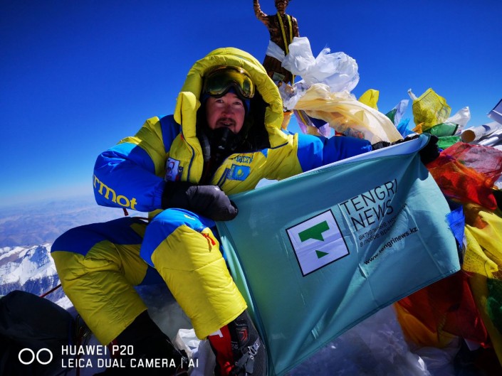 Отметим, что казахстанский альпинист покорил все 14 высочайших вершин мира. Высота Эвереста составляет 8 848 метров.