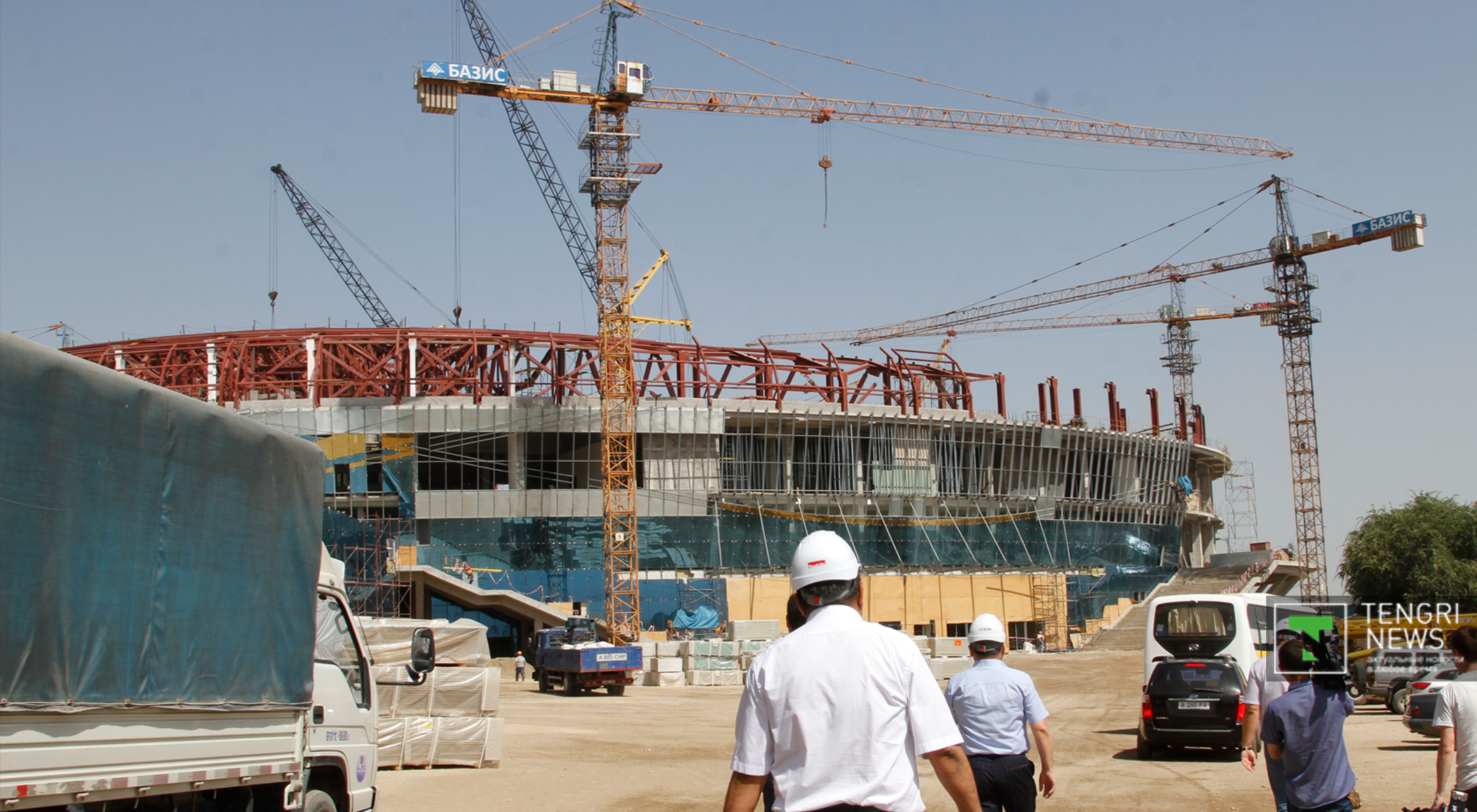 Между тем, по словам замдиректора еще одного подрядчика, компании СК "Базис" Константина Козлова, на строительной площадке трудятся 970 человек. Он заверил, что возведение объектов ведется в срок, строительство в некоторой степени идет даже на опережение. "По договору мы должны сдать объект в октябре 2016 года, но сдадим в августе 2016 года, также проведем тестовые соревнования", - добавил Козлов. Спикер отметил, что уже сейчас идут работы по прокладке инженерных сетей, а также по монтажу металлических конструкций кровли.
