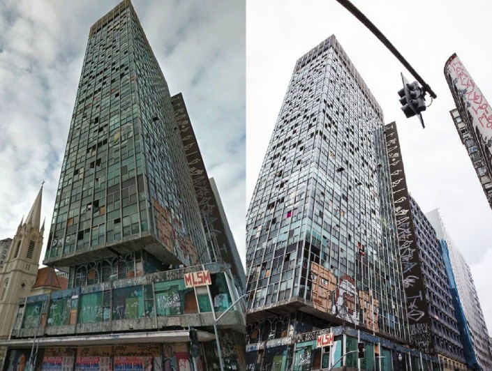 Бразильские СМИ опубликовали фотографии высотки до пожара. На них дом выглядит полузаброшенным - разрисованным граффити и с выбитыми окнами.