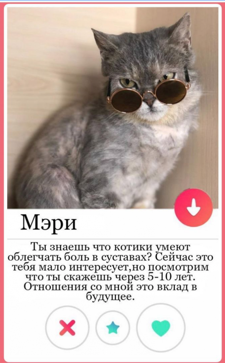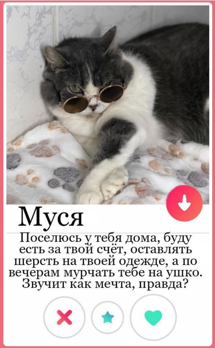 Алматинский приют для кошек "Котопес" необычным образом предложил пользователям выбрать себе питомца. Администраторы разместили анкеты кошек в стиле приложения Тиндер, предназначенного для знакомств, передает корреспондент Tengrinews.kz.
