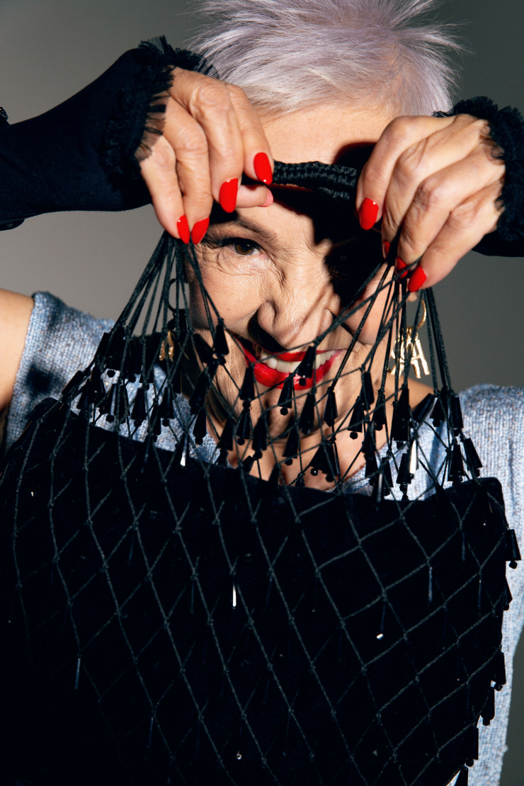 Девушка решила украсить авоськи, добавив кристаллы, хрустальные бусины и перья. В рекламной съемке приняли участие модели 60+.