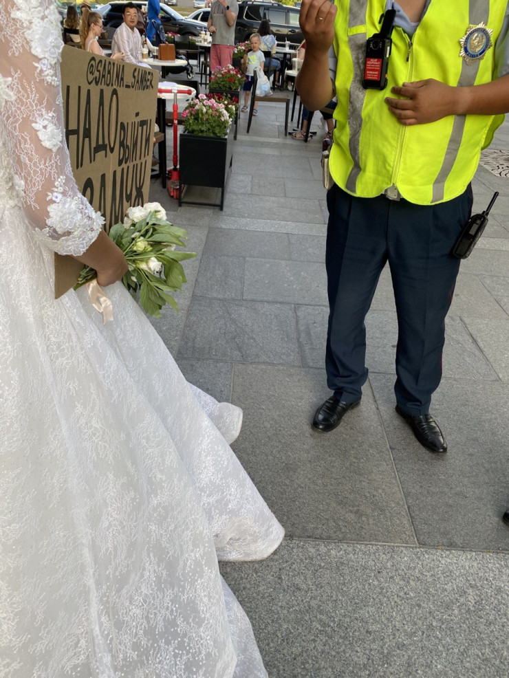 "Надо выйти замуж". Алматинка устроила одиночный пикет Сабина Санбер