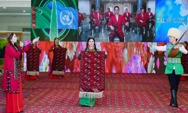 Согласно первому заданию студентки продемонстрировали достижения нашего времени, уважение к туркменским женщинам и девушкам, а также свою способность к искусству и творчеству, продемонстрировали свое мастерство в исполнении восторгающих слов, песен, стихотворений, а также театральных сценок с монологами.